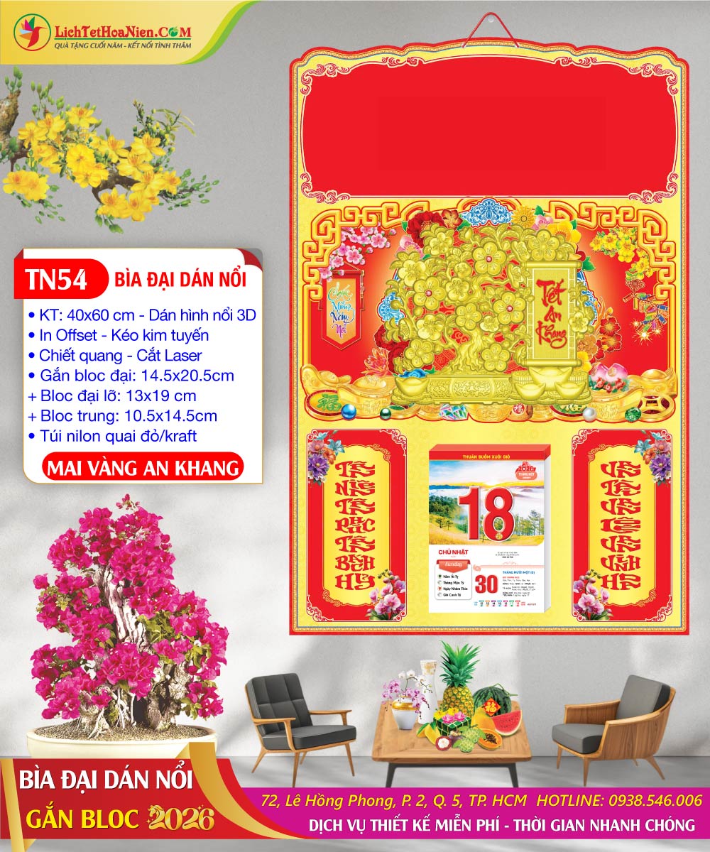 Mã Số: TN54 – Bìa Đại (40×60) Dán Nổi – Mai Vàng An Khang